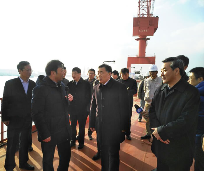 2016年12月27日上午,南通市市委書記陸志鵬一行來公司進行了調(diào)研和視察。公司董事長孟咸宏就當前船舶行業(yè)產(chǎn)能過剩、很多造船企業(yè)發(fā)展舉步維艱,而我公司實施主動經(jīng)營戰(zhàn)略、企業(yè)自我創(chuàng)新轉(zhuǎn)型、建造產(chǎn)品的市場需求、高技術(shù)人才的引進、企業(yè)的發(fā)展方向等情況向陸書記作了匯報。陸書記鼓勵我司要創(chuàng)新發(fā)展,抓住機遇,積極參與到國家的“一帶一路”建設(shè)中去。